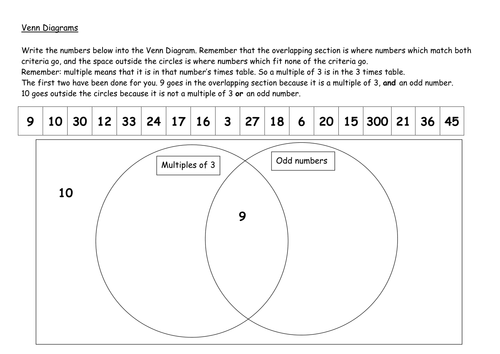 Venn Diagram Worksheets - Super Teacher Worksheets This page has a set printable Venn Diagram worksheets for teaching math. For Venn Diagrams used in reading and writing, please see our compare and contrast. Level: Basic Grades 3-5 Math Venn Diagrams Complete each V.D. by copying the numbers from the box into the correct place. 4th through 6th Grades View PDF Factors on Venns